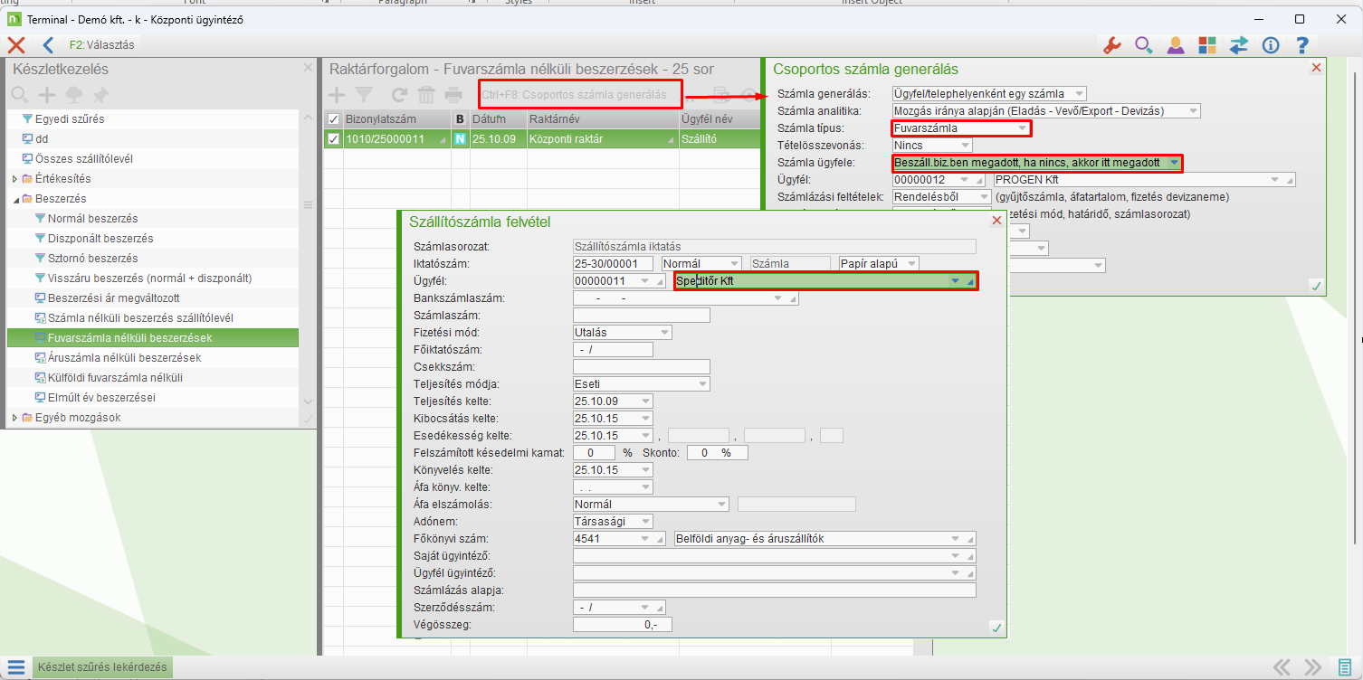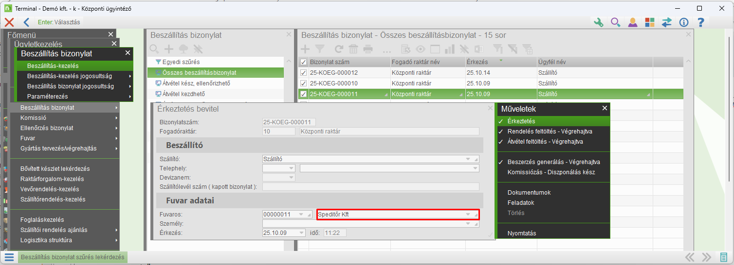 A szállítólevélhez tartozó fuvarost a beszállítás bizonylatból fogja megajánlani a program.