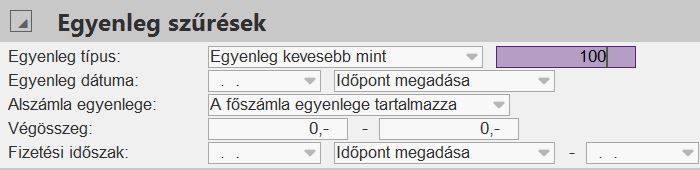 Használata pl. akkor javasolt, ha mondjuk a 100 Ft alatti egyenlegeket szeretnénk eltüntetni. Ilyenkor a szűrésbe azt állítsuk be, hogy "Egyenleg típus = Egyenleg kevesebb, mint 100".