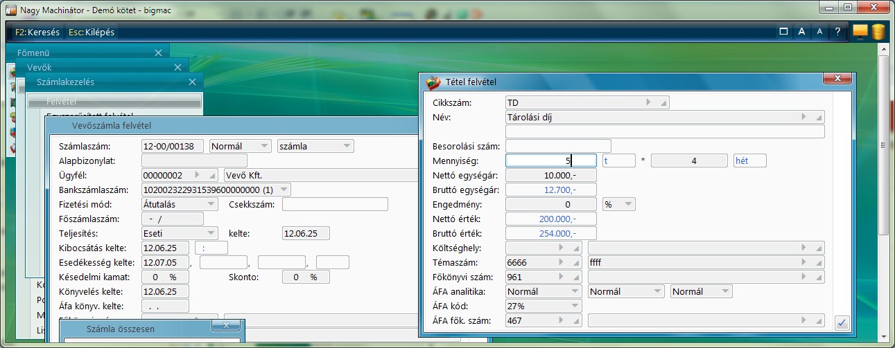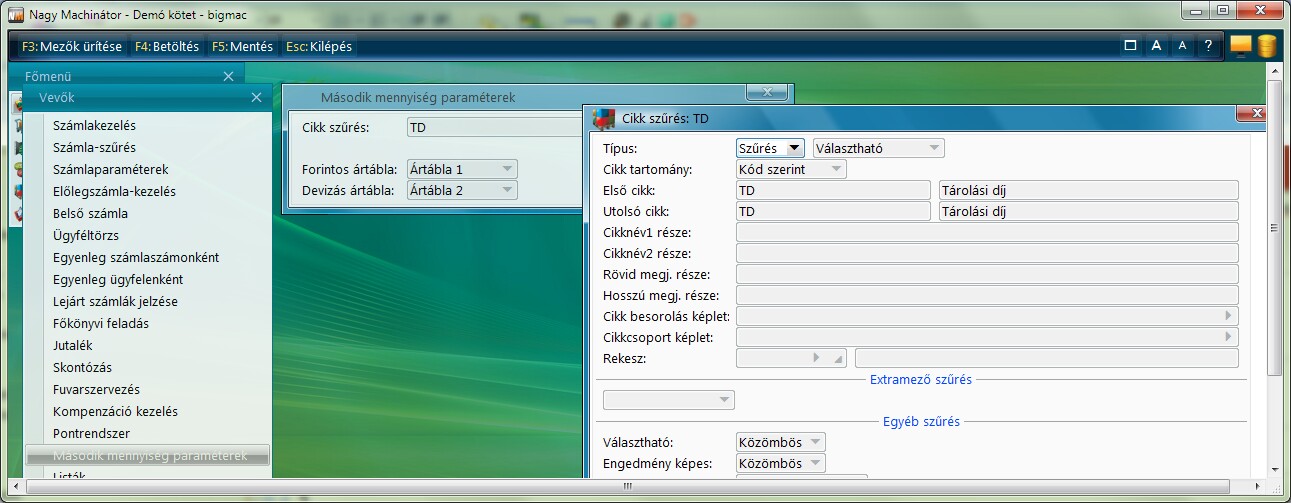 A paramétertábla kitöltése azonnal aktiválja a második mennyiség számlázásának rendszerét(, csak kikapcsolni lehet a Szla2Menny paraméterrel, ha esetleg az egyik menüben mégsem kellene).
