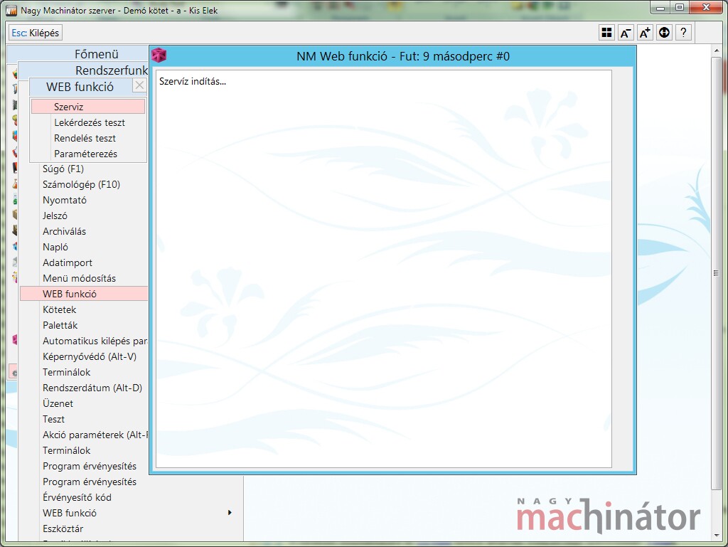 A funkciót egy a szerver gépre telepített terminálon kell elindítani. A legpraktikusabb működtetés a Webszerver terminál alkalmazása.