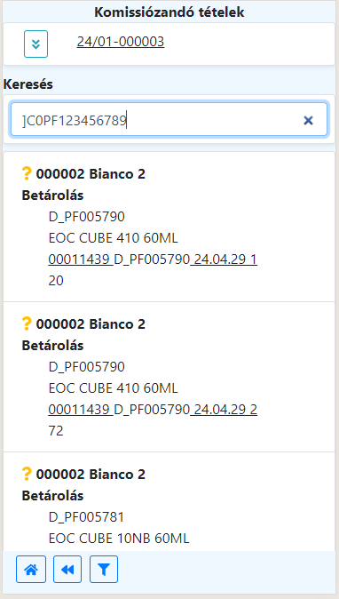 Az egyes mobil műveletekben fontos feladat a feldolgozandó bizonylattétel megtalálása.