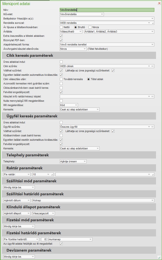 A funkcióval (beállítástól függően) vevő vagy szállító rendeléseket vehetünk fel.