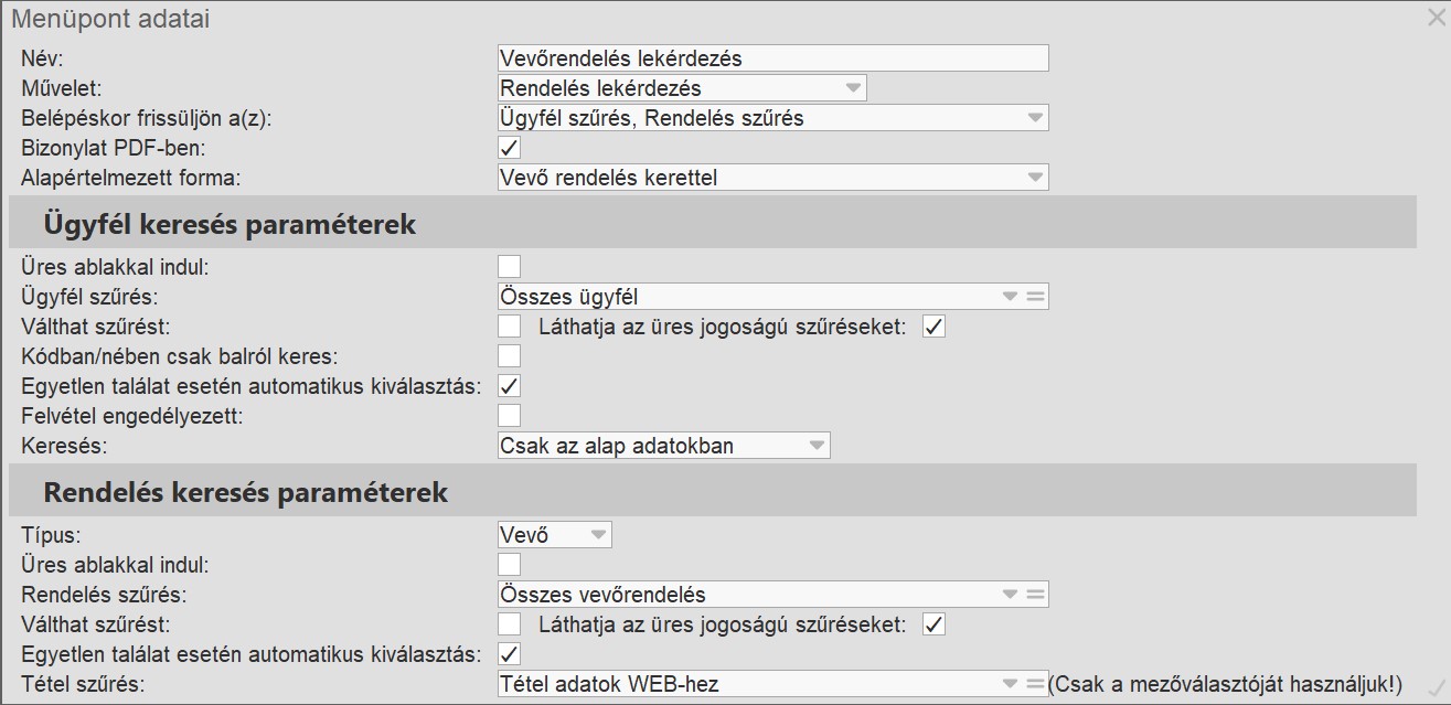 A rendelés lekérdezésnél meg kell adni, hogy vevő vagy szállító rendeléseket kívánunk lekérdezni.
