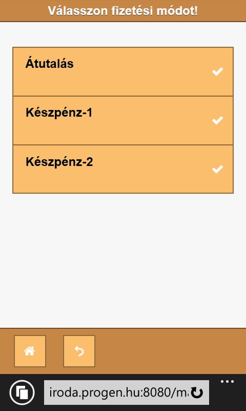 Az ügyféltörzsben engedélyezett fizetési módok közül lehet választani.