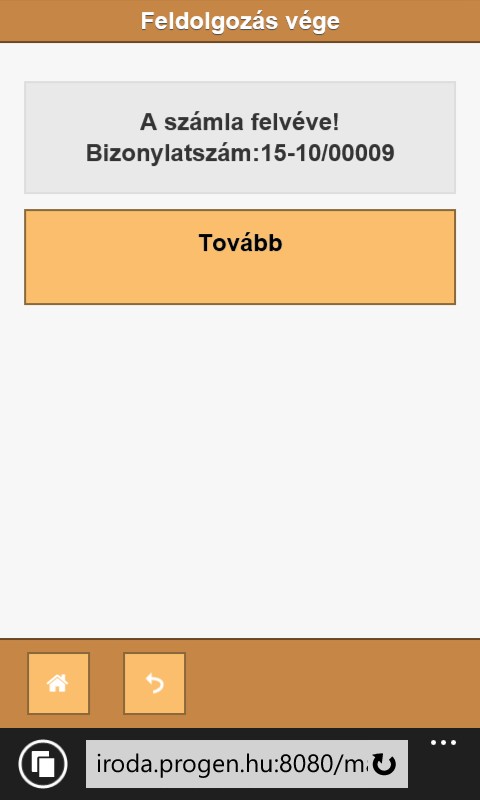 Amennyiben a felhasználó valamilyen okból félbehagyja a számlázást, az újbóli bejelentkezés után folytathatja annak rögzítését, a már felvett adatok nem vesznek el.