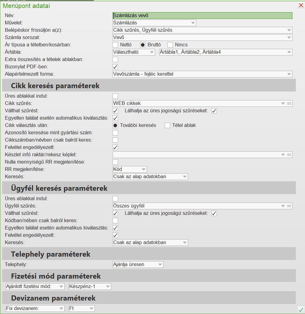 A menüpont készletkezelés nélküli számlák kiállítására alkalmas.