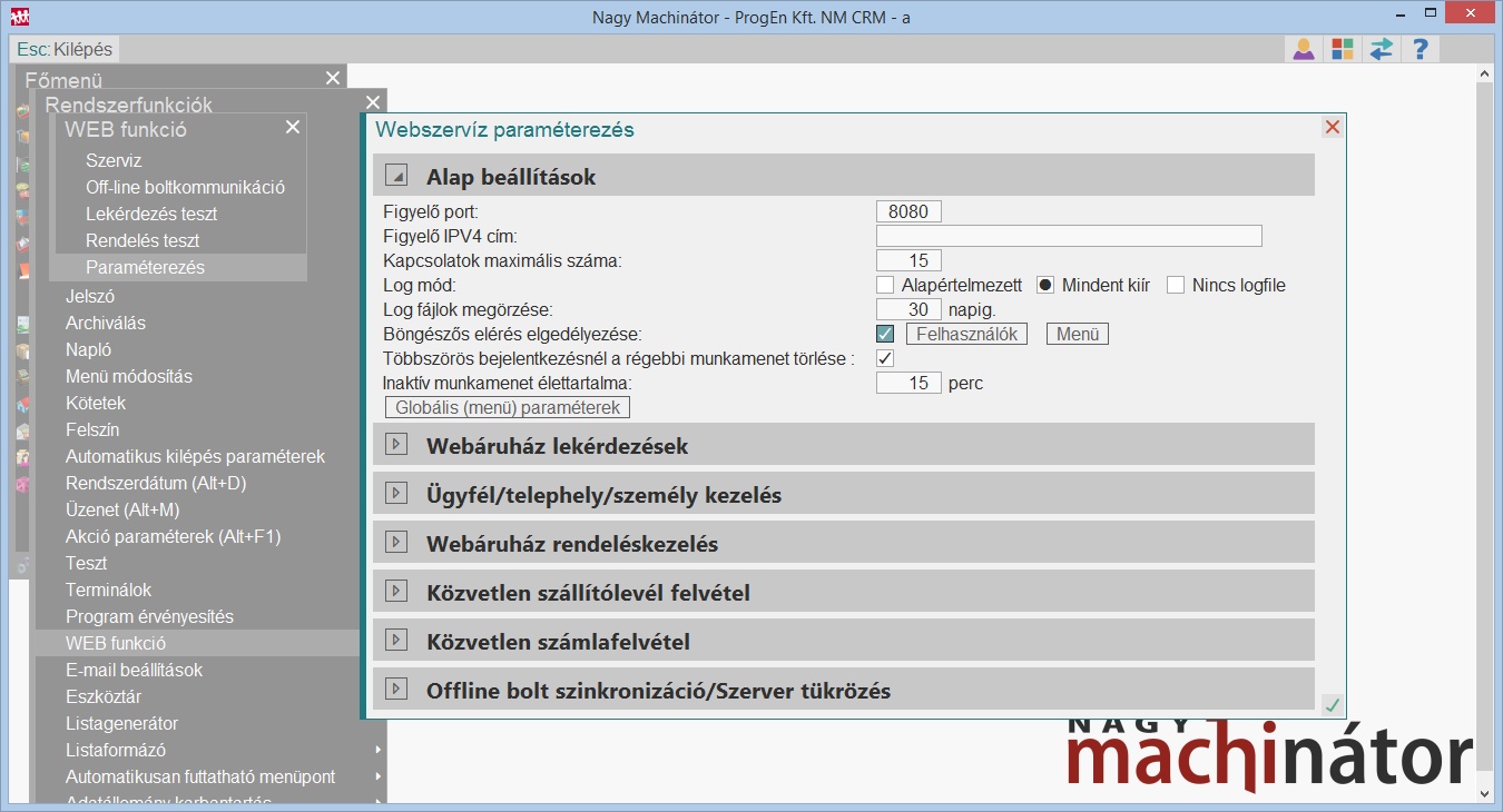 A Webparaméterek funció Alapbeállításai között engedélyezni kell a Böngészős elérést.