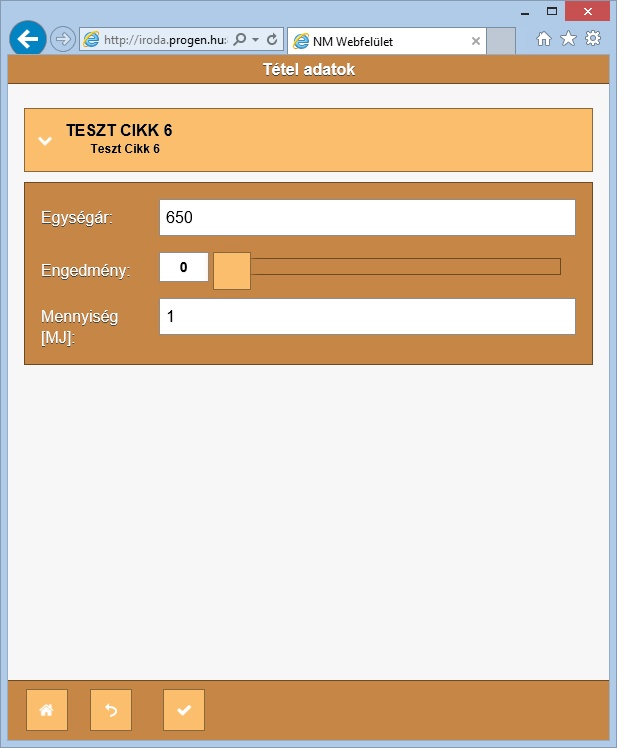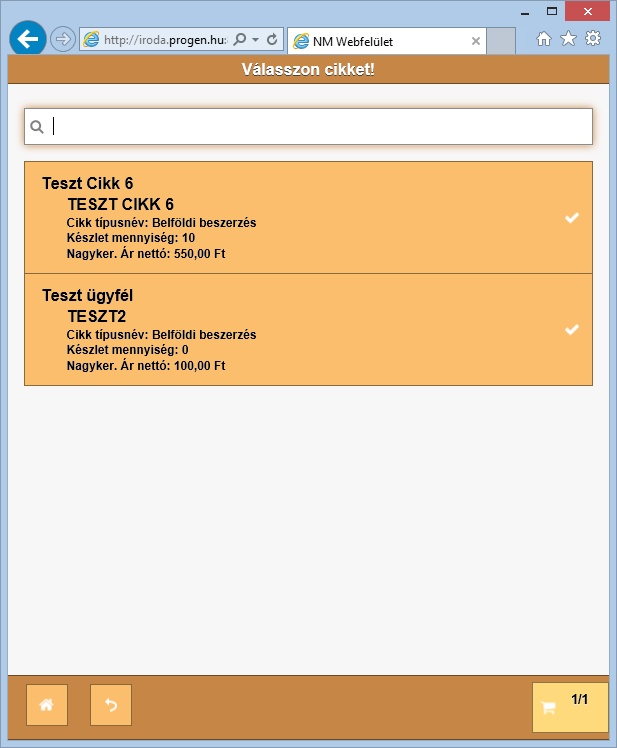 Cikk választást követően partnerünk megadhatja a rendelni kívánt mennyiséget, amit a pipa ikonnal hagyhat jóvá.