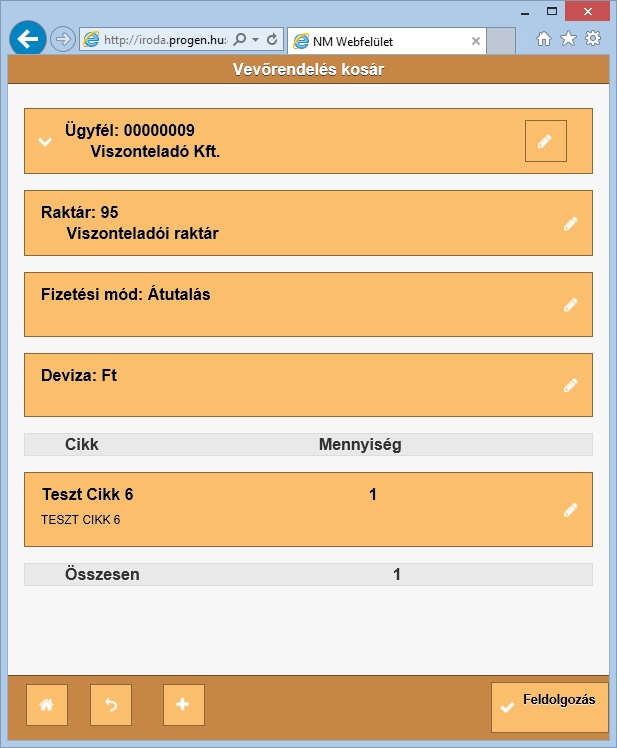 A jobb alsó sarokban található Kosár ikonnal tudja a partnerünk a rendelés összegzését megtekinteni.