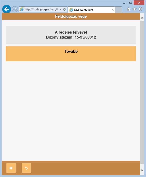 A folyamat végén a rendszerünkben rögzített rendelés bizonylatszámát kapja megerősítésként viszonteladónk.