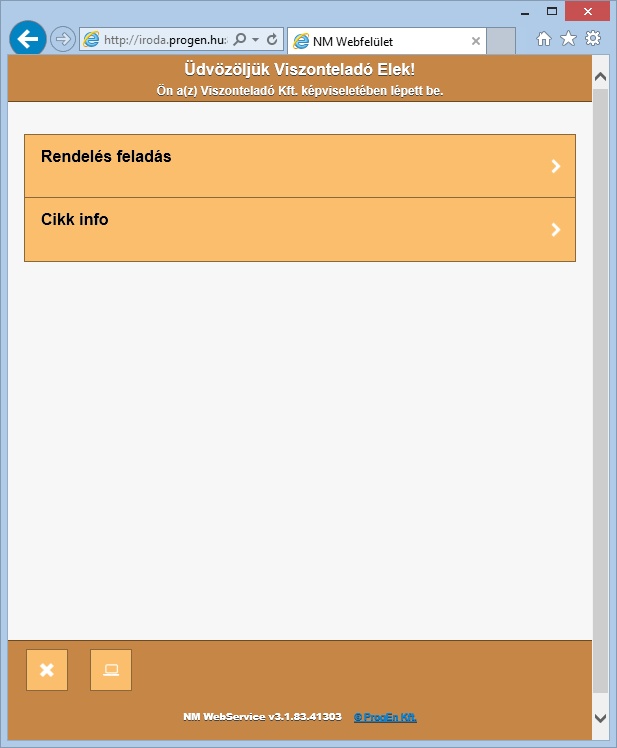 Bejelentkezést követően az általunk kialakított menüpontok közül választhat a partnerünk. Ebben az esetben rendelést tud feladni részünkre, illetve a rendelhető cikkek készlet mennyiségét, árait és egyéb adatait tekintheti meg.