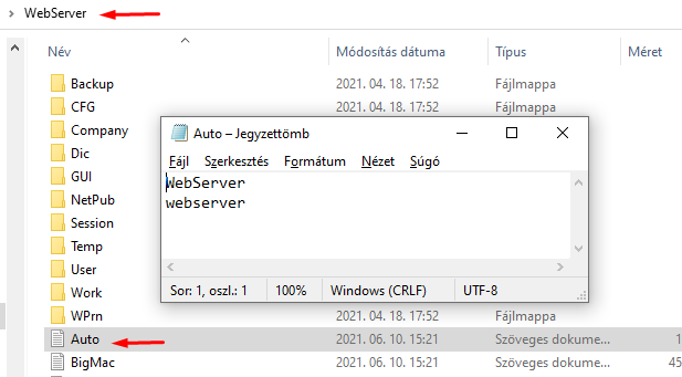 a WebServer könyvtárban található Auo.INI-ben is át kell írni a felhasználó nevet és a jelszót.