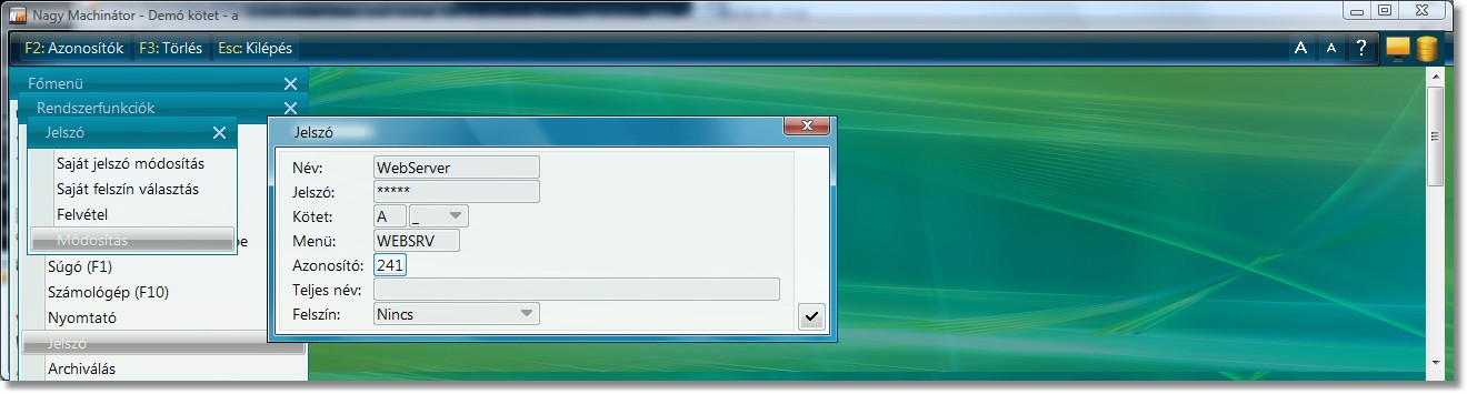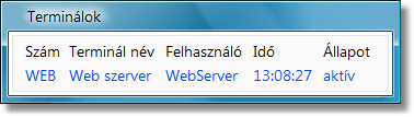 A Webszerver terminál felhasználója az lesz, akinek az Azonosító mező tartalma 241.