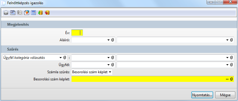 Funkció elérése menüszerkesztéskor: Adó / Felnőttképzés igazolás