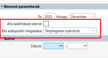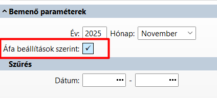A lekérdezésben a dátum szűréssel csak az adott időszaki adatokat kapjuk eredményül, de a bevallásban göngyölített adatokkal kell számolni.