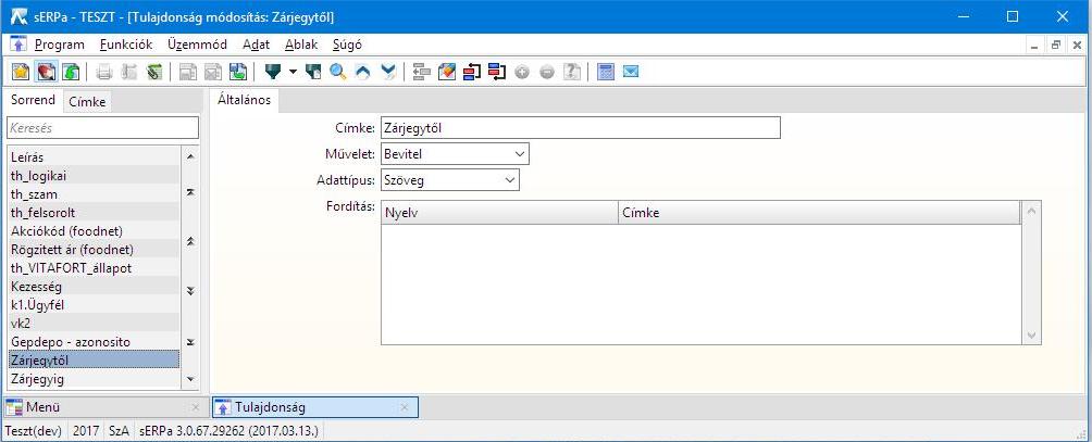 A Tulajdonság bevitelben meg kell adni két tulajdonságot, amelyek a szállítólevél tételben a zárjegy sorszámtartomány kezdő és záró értéke lesz.