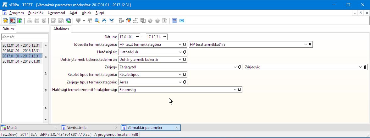 - a zárjegy nyilvántartásba azok a termékek kerülnek bele amelyek be vannak sorolva a vámraktár paraméterben lévő zárjegy termékkategóriába.