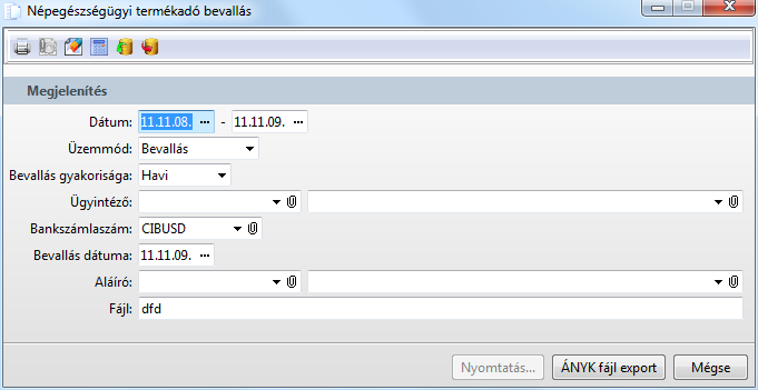 Funkció elérése menüszerkesztéskor: Adó / Népegészségügyi termékadó bevallás