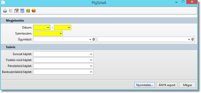 A párbeszédablakon, ha üres a szűrés nem nyomtatódik excelbe illetve adódik át ÁNYK-ba semmi.