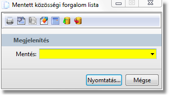 Funkció elérése menüszerkesztéskor: Adó / Közösségi forgalom / Listák / Mentett közösségi forgalom bevallás lista