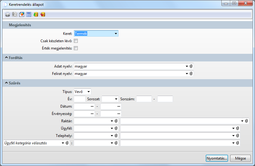 Funkció elérése menüszerkesztéskor: Rendelés-nyilvántartás / Listák / Keretrendelés állapot lista