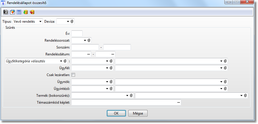 Funkció elérése menüszerkesztéskor: Rendelés-nyilvántartás / Rendelésállapot összesítő