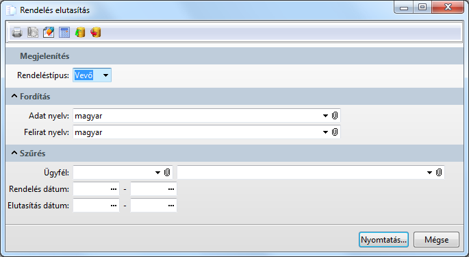 Funkció elérése menüszerkesztéskor: Rendelés-nyilvántartás / Listák / Rendelés elutasítás lista