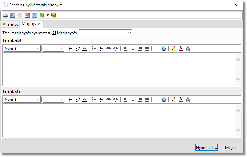 Nincs / Rendelés megjegyzés / Tétel megjegyzés / Rendelés+Tétel megjegyzés |