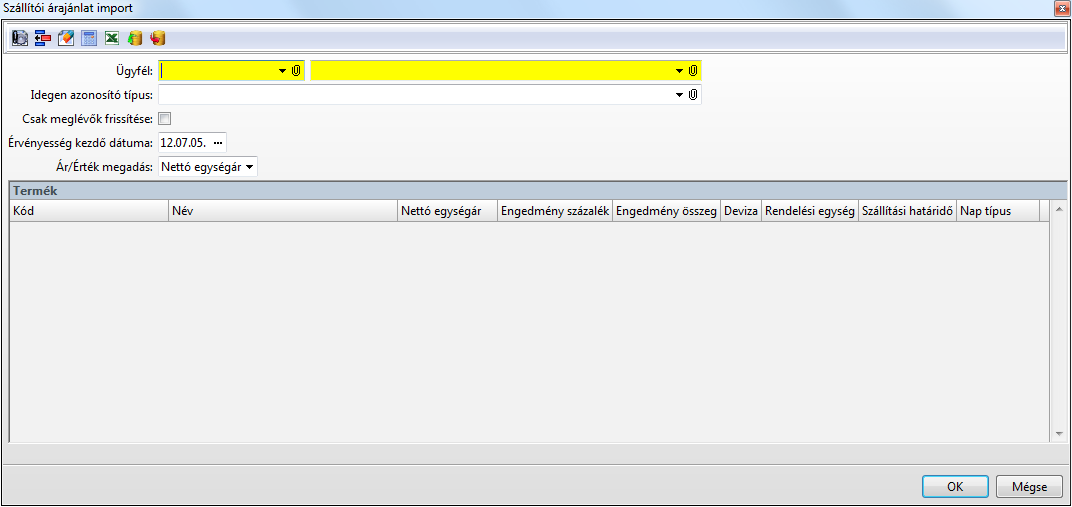 A funkció segítségével szállítói árajánlatok importálhatók a rendszerbe külső, excel táblázatból.