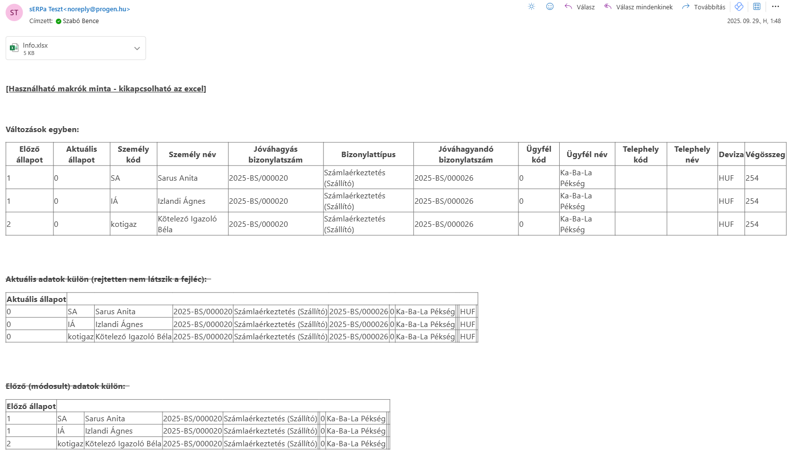 A példa alapján kiküldött levél az alábbi formában látható: