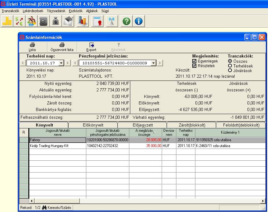 Belépés után a Lekérdezések – Számla információkban meg kell adni, melyik bankszámla szám és melyik nap kivonatát szeretné kitenni a felhasználó, majd az Export gombra kell kattintani.