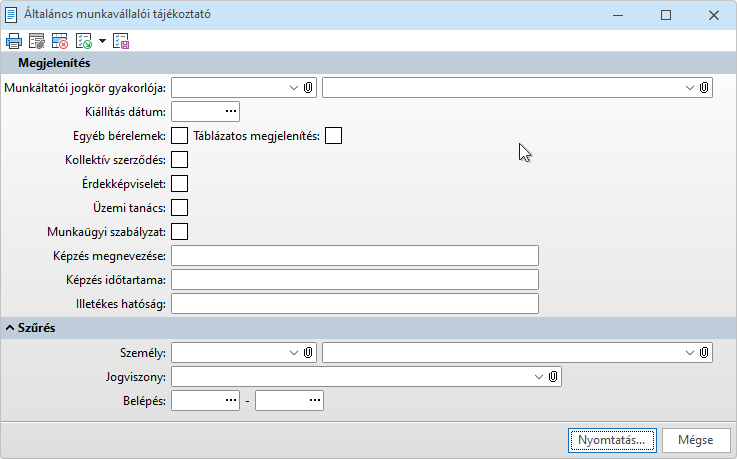 Funkció elérése menüszerkesztéskor: Bérszámfejtés / Listák belépéskor / Általános munkavállalói tájékoztató lista