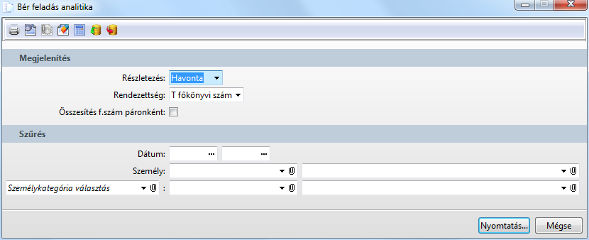 Funkció elérése menüszerkesztéskor: Bérszámfejtés / Listák év közben / Bér feladás analitika