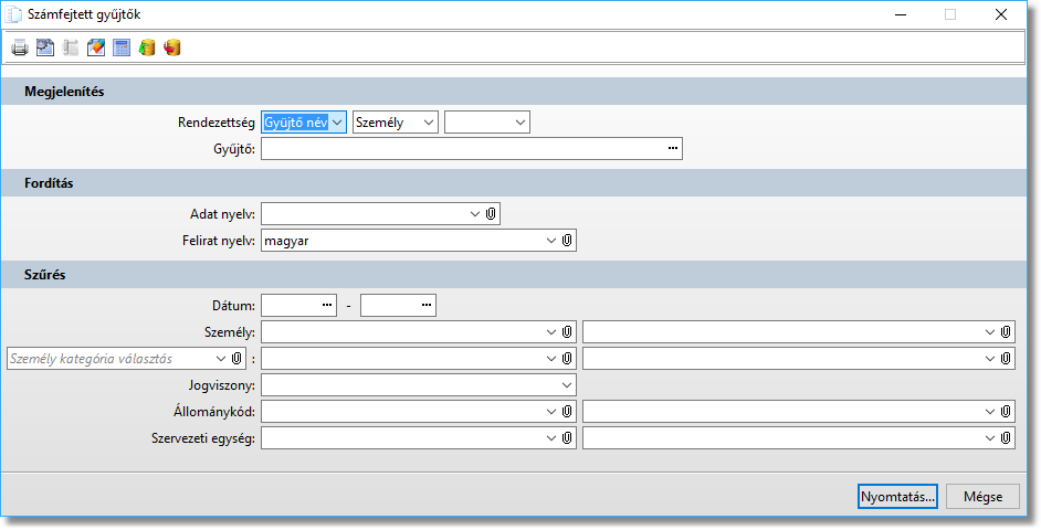 Funkció elérése menüszerkesztéskor: Bérszámfejtés / Listák év közben / Számfejtett gyűjtők