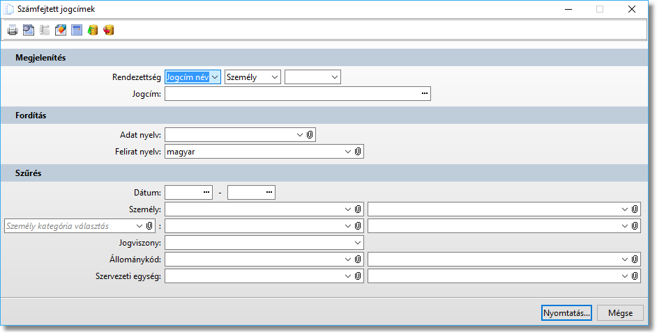 A listával a számfejtésekben szereplő jogcímeket listázhatjuk.