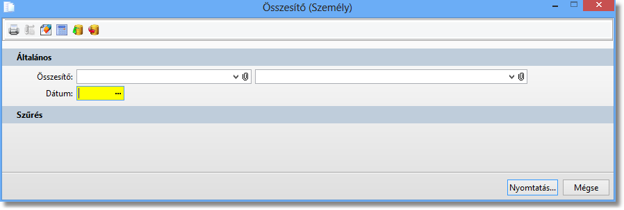 Funkció elérése menüszerkesztéskor: Bérszámfejtés / Listák év közben / Összesítő (Személy)