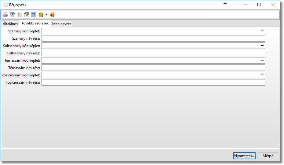 Funkció elérése menüszerkesztéskor: Bérszámfejtés / Listák havonta / Bérjegyzék