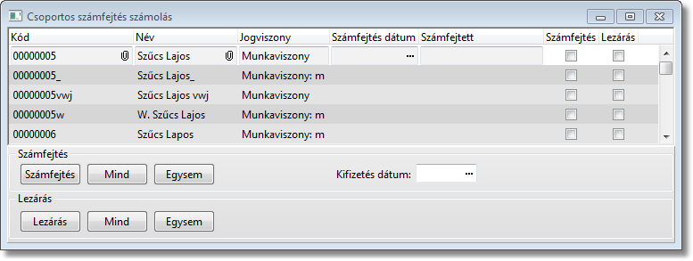 Számfejtéssel már rendelkező személyek jelennek meg, akiknek együttesen ki lehet számoltatni a számfejtését és/vagy le is lehet zárni a számfejtését.