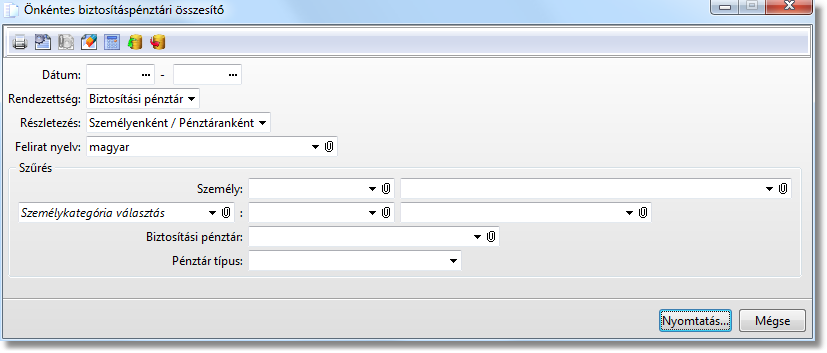 - Önkéntes biztosításpénztári összesítő lista párbeszédablak -
