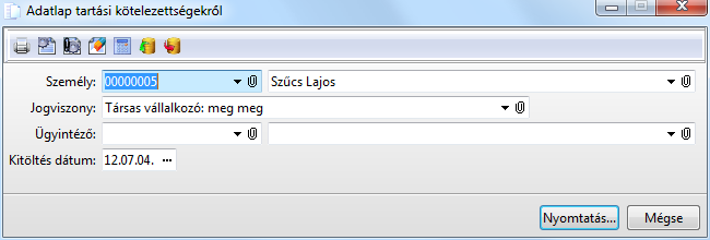 Funkció elérése menüszerkesztéskor: Bérszámfejtés / Listák kilépéskor / Adatlap tartási kötelezettségekről