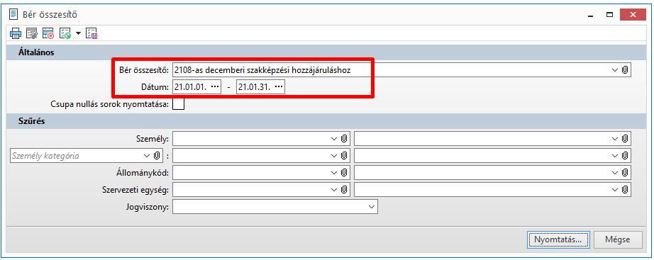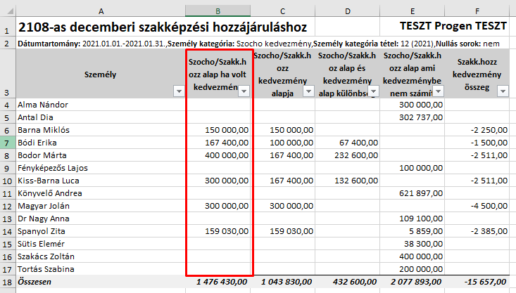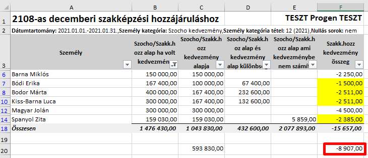 A kézzel történő korrekcióhoz készítettünk egy "2108-as decemberi szakképzési hozzájáruláshoz" elnevezésű Bér összesítőt, melynek segítségével könnyen megszerezhetik a módosításhoz szükséges információkat.