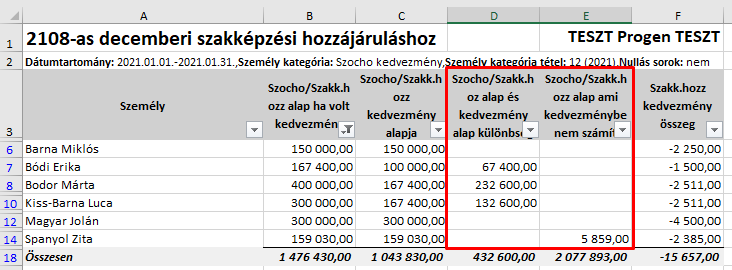 3. lépés: Ha rászűrtünk ezen személyekre, azt kell megvizsgálnunk, hogy a "Szocho/Szakk.hoz alap és kedvezmény alap különbség" vagy a "Szocho/Szakk.hozz alap ami kedvezménybe nem számít" oszlopokban szerepel-e adat. A két oszlop közül, ha az egyikben is szerepel adat, akkor van teendőnk a személlyel kapcsolatban.