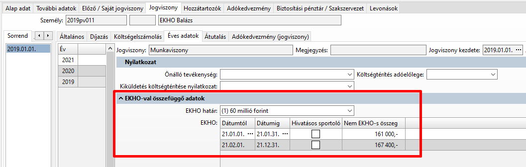 Felhívjuk figyelmüket, hogy a program a számfejtés dátumán vizsgálja a fizetendő közterhet, így a 2021.01.22-t megelőző napok számfejtéseit 2021.01.22-t megelőző számfejtés dátummal rögzítsék.