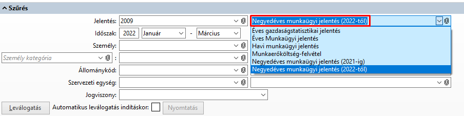 Amennyiben egy korábbi - változást nem érintő - időszakra vonatkozóan szeretnék lekérni, akkor a "Negyedéves munkaügyi jelentés (2021-ig)" elnevezésűt használják.