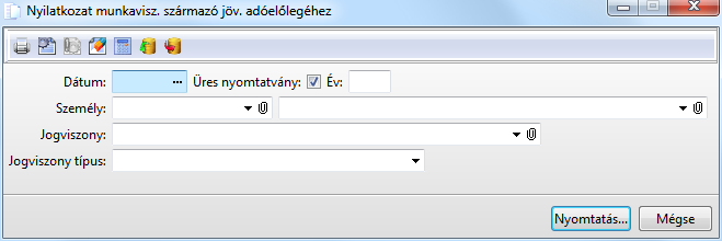 Funkció elérése menüszerkesztéskor: Bérszámfejtés / Listák belépéskor / Előző évi listák / Nyilatkozat a jövedelem adóelőlegének megállapításához