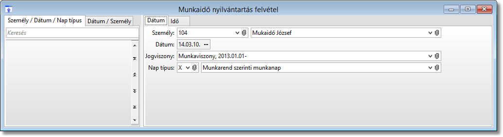 Ha Munkaidő nyilvántartás módosítás = Csak saját, akkor a keresésben csak a személy saját munkaidői látszanak, és ha a személy jóváhagyó is egyben, akkor azok a munkaidők is amelyeket jóváhagyhat.