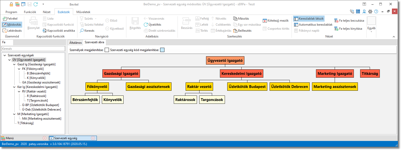 A szervezeti egységek fa struktúrába vannak rendezve és így kereshetők. |