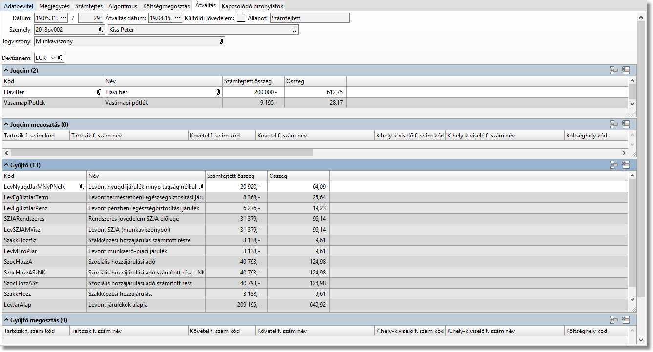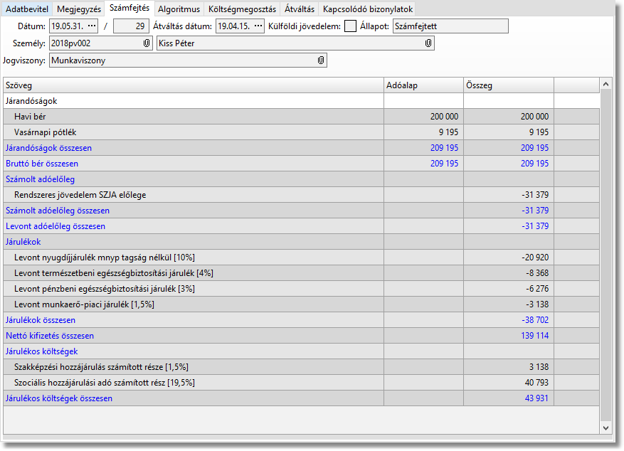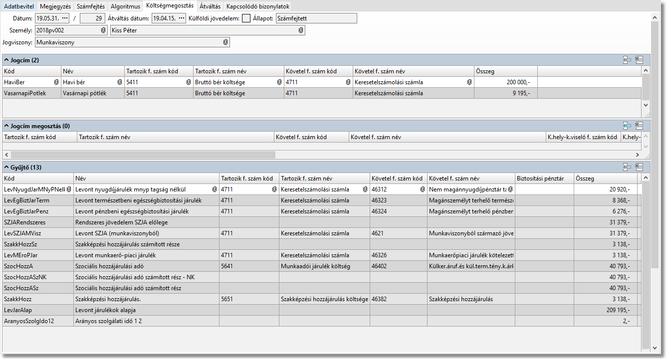 Egy jogviszonynak egy hónapon belül csak egy olyan számfejtése lehet amely nem Érvénytelen állapotú. A "Nem" számfejtett számfejtések nem számítanak sehová (akkor sem, ha a számfejtés fülön ott maradtak az összegek).