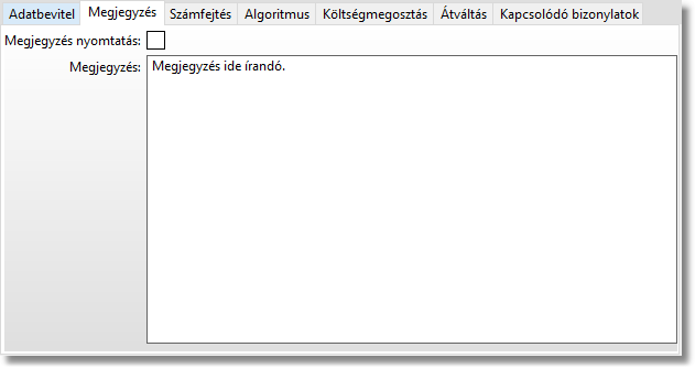 - Megjegyzés fül -