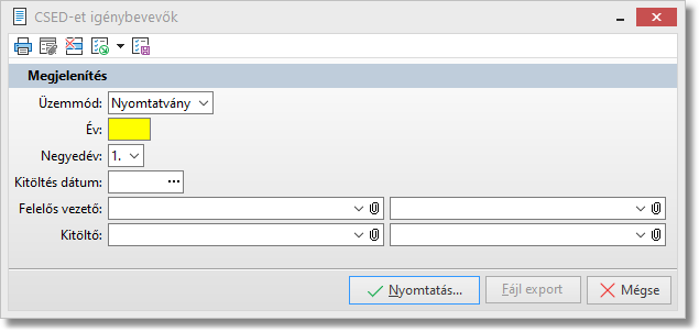 Funkció elérése menüszerkesztéskor: Bérszámfejtés / TB kifizetőhely / Listák / CSED-et igénybevevők